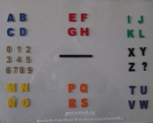 La mayoría de pacientes diagnosticados con ELA, pierden la voz y empiezan a comunicarse a través de miradas con un tablero (foto) especialmente diseñado para ellos, un proceso que su familias y cuidadores deben aprender en el proceso de asimilación de la patología.