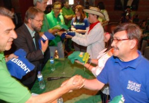 Además intercambiaron simbólicamente camisetas azules y verdes. «Votamos por Noemí, y sí queremos un país mejor. Por eso queremos apoyarlo a usted», le dijeron los ciudadanos al candidato Antanas Mockus.