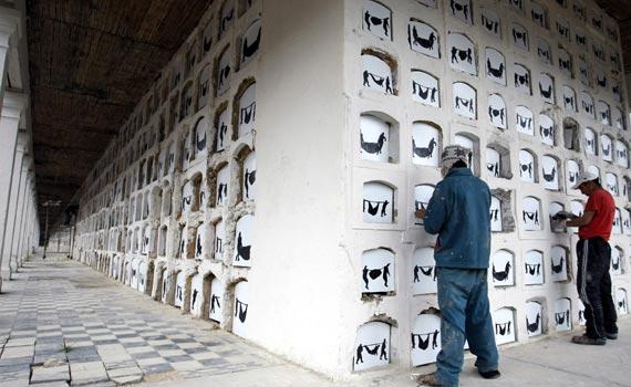 La manifestación artística consistió en instalar lápidas en los 8 mil 957 receptáculos existentes en los cuatro columbarios del Parque de la Reconciliación, con la particularidad de que las lápidas están adornadas con una serie de íconos y siluetas que ilustran a los cargueros que durante el siglo XIX transportaban personas por el territorio colombiano, pero en este caso es una procesión de cargueros que movilizan muertos.