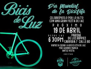 Este 19 de abril se celebra el Día Mundial de la Bicicleta, y aquí en Bogotá se tiene el reto de construir una gigantesca bicicleta de luz con todos los reflectivos de los participantes. Se vale traer manillas y stickers de neón, y cascos de colores. La novedosa idea es del concejal Yefer Vega.