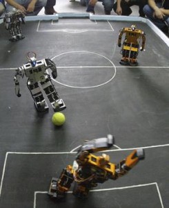 Conferencistas: Enrique González, Giovanny Piedrahita, Laura Becerra. La entrada es libre. No corren, ruedan; sólo se cansan cuando se les acaba la batería, y su mayor objetivo es meter goles. Los robots también juegan fútbol. Al igual que con los humanos, tienen su asociación: la FIRA y un mundial: la Robocup.