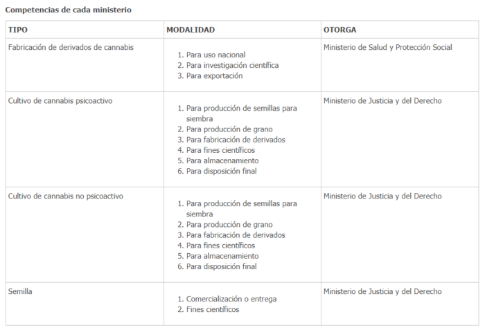 Por su parte, las resoluciones expedidas por el Ministerio de Justicia (577 y 578) regulan técnicamente la evaluación y seguimiento correspondientes a las modalidades de licencias que corresponde entregar a esta entidad –cultivo de cannabis psicoactivo, no psicoactivo y uso de semillas– y establecen las tarifas que se deben pagar para la obtención de estas licencias.