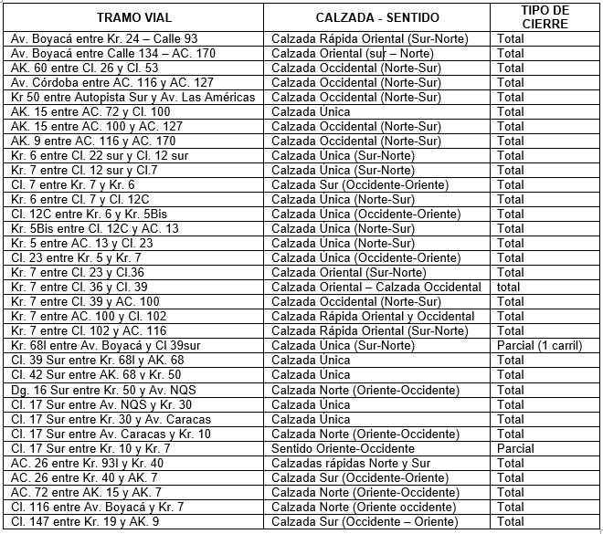 A continuación, se describen los cierres viales y desvíos vehiculares necesarios para garantizar la seguridad vial antes, durante y después del desarrollo de la Ciclovía nocturna.