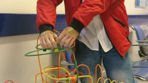 En este centro asistencial, trabajadores sociales y terapeutas ocupacionales buscaron un ‘padrino’ para fabricar el par de prótesis y hacer posible que volviera a la vida. Sus nuevos brazos llevan incorporados hilos y poleas, que cumplen la función de tendones artificiales y se activan con sencillos movimientos del paciente.