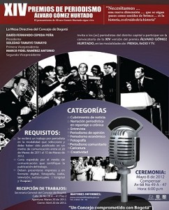 La Mesa Directiva del Concejo de Bogotá abrió la convocatoria para el XIV Premio de Periodismo Álvaro Gómez Hurtado, cuyo propósito es incentivar a los periodistas que cubren Bogotá y que se hayan distinguido por los servicios prestados a nuestra ciudad.