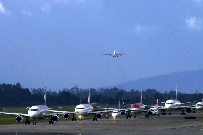 Aviones en la pista del aeropuerto El Dorado de Bogotá