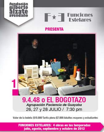 9.4.48 o el Bogotazo; una obra que mira el 9 de abril como un suceso de carácter complejo para el país que desencadenó diversos acontecimientos a lo largo de estos 64 años de historia. 9,4.48 o el Bogotazo hace parte de las cuatro obras seleccionadas a participar durante la programación Funciones Estelares 2012.