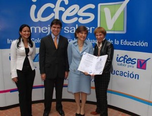 Con la presencia de la Ministra de Educación Cecilia María Vélez White, mediante acto protocolario, le fue entregado a la Directora del ICFES Margarita Peña Borrero y a todo el grupo de colaboradores la Certificación de la Calidad del ICONTEC que certifica el sistema de la gestión de la calidad de este organismo.