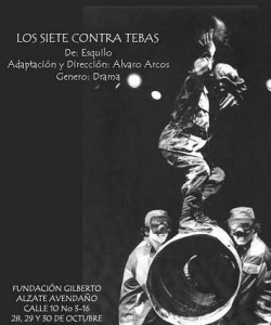 Los Siete contra Tebas de Esquilo, uno de los grandes poetas griegos es llevado a la escena por Cali Teatro, que lejos de ser un tema clásico, es un tema sobre la guerra, un acontecimiento cotidiano como el que se lleva a cabo desde hace unos años entre Estados Unidos e Irak, o la lucha armada que desde hace varias décadas se libra en Colombia, o los conflictos familiares que a diario se presentan, bien por la repartición de bienes o bien, de grupos de personas por cuentas de cobro sobre negocios ilícitos, donde siempre prevalece la ley del más fuerte.