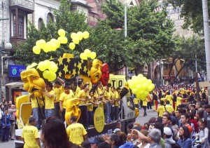 Después de los bolivianos estarán los bogotanos de Hombre Arte Teatro con un performance de danza contemporánea ejecutado en un carro con vitrina; Transeúnte Teatro con sus personajes mitológicos, música en vivo y zanqueros; la comparsa de Ecopetrol con una iguana de 30 metros; la Banda Guardia Fantasma de Bogotá con su big band de 110 músicos en escena; Canapro, integrada por 40 estudiantes de teatro de la Asociación de Profesores de Bogotá, que incluirán la famosa frase de Fanny “Todo es posible, menos la guerra” en su carroza; la comparsa del Éxito con sombrillas y banderas, y Reciclarte de Bogotá, con grandes marionetas y música en vivo.