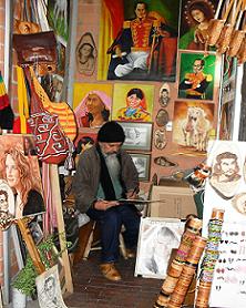 “Llegué un domingo a la capital y me alojé en un hotel barato de La Candelaria, porque no tenía mucho dinero. Salí con mis cosas a la calle 13 con carrera 3 y puse un paño en el piso, encima unas artesanías que fabriqué y una silla donde se sentaba la gente que quería ser retratada”, cuenta Morel.