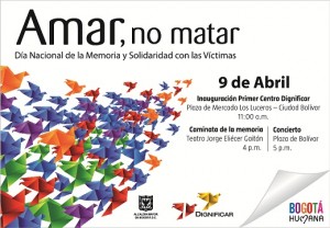 En un sentido homenaje y acto cultural que evidencia el compromiso con las víctimas, la Alcaldía Mayor de Bogotá y la Alta Consejería para los Derechos de la Víctimas la Paz y la Reconciliación, invitan a  la opinión pública, a sensibilizarse mediante la campaña “Amar, no matar”, participando en las diferentes actividades que se llevarán a cabo el 9 de abril.