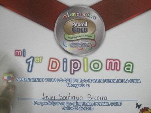gracias cata y promil gold por esta olimpiada. mi bebe Daniel Santiago participo y tiene su primer diploma, ojalá se hiciera con mas frecuencia. lastima que no esta alli para poderlos ver pero mi esposo me conto lo divertido que fue. quisiera poder ver el video y la entrevista