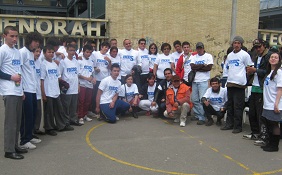 Después del acto de firma del pacto por la convivencia en la manzana educativa, estudiantes y habitantes de calle jugaron un partido de microfútbol.