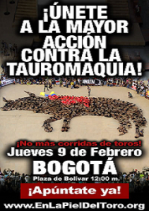 Este 9 de febrero se realizará “Ponte en la Piel del Toro”, una campaña para promover la abolición de las corridas de toros, que adelanta la organización protectora de animales, Anima Naturalis Internacional. El turno es ahora para Bogotá y la cita es en la Plaza de Bolívar.