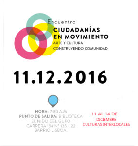 La Secretaría Distrital de Cultura, Recreación y Deporte, SCRD, y el Instituto Distrital de las Artes, IDARTES, en asocio con más de 30 iniciativas ciudadanas, artísticas y culturales de diez localidades, realizarán el primer encuentro “Ciudadanías en movimiento: Arte y cultura construyendo comunidad”.