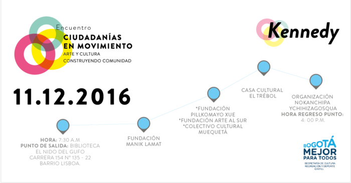 Los recorridos son gratuitos, con cupo limitado, por lo cual es necesario inscribirse en el formulario virtual. Las comunidades ofrecerán para el almuerzo ollas comunitarias en cada una de las rutas. Para mayor información e inscripción visita la página web: http://www.culturarecreacionydeporte.gov.co/es/encuentro-ciudadanias-en-movimiento