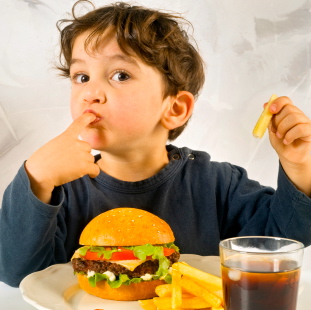 young boy eating chessburger with french fries and cokeHace algunos años, la diabetes estaba relacionada con gente mayor que la padecía por malos hábitos alimenticios. Ahora el índice de crecimiento de la enfermedad tipo dos en población infantil crece considerablemente.