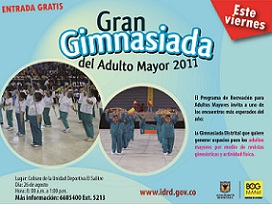 Deportistas en representación de 19 localidades del Distrito Capital se darán cita este viernes 26 de agosto en el coliseo Mayor El Salitre (8 a.m. a 1 p.m.), para cumplir con la Gimnasiada Distrital, en el marco de la celebración del mes del adulto mayor.