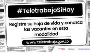 Es importante resaltar que la iniciativa de Teletrabajo del Ministerio TIC no actúa como bolsa de empleo, sino que es un puente para que a través del botón ‘Registro de teletrabajadores’ en su página web, los usuarios se conecten con la oferta disponible en las plataformas oficiales de empleo que tienen vacantes en esta modalidad.
