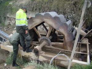 Las autoridades ubicaron una guaya con sello de plomo en los canjilones (grandes molinos), motobombas y trituradoras, además de los avisos de sellamiento.