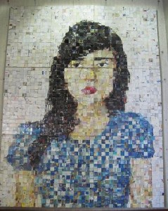De esta forma, estas piezas son el resultado del proceso de recolección de elementos de la cotidianidad de la artista como etiquetas, facturas, empaques, recortes de periódicos, entre otras.