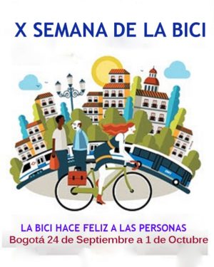 La Secretaría de Movilidad con la participación de otras 15 entidades del Distrito, celebrará la X Semana de la Bici entre el 24 de septiembre y el 1 de octubre. Desde el pasado 29 de marzo, la Semana de la Bicicleta se institucionalizó en la ciudad por el Acuerdo 668 de 2017 expedido por el Concejo de Bogotá. Dicho acto administrativo señaló que la Semana de la Bici se cumplirá la última semana de septiembre de cada año.